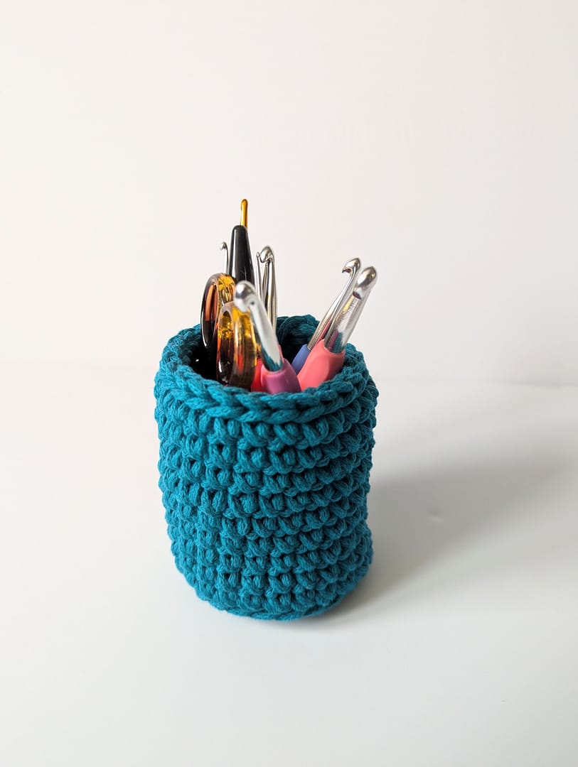 Or when making 3D items such as my pencil pot / crochet hook pot. When I have finished working the base I work through the back loop only to create the turning point and then continue for the cylinder section.