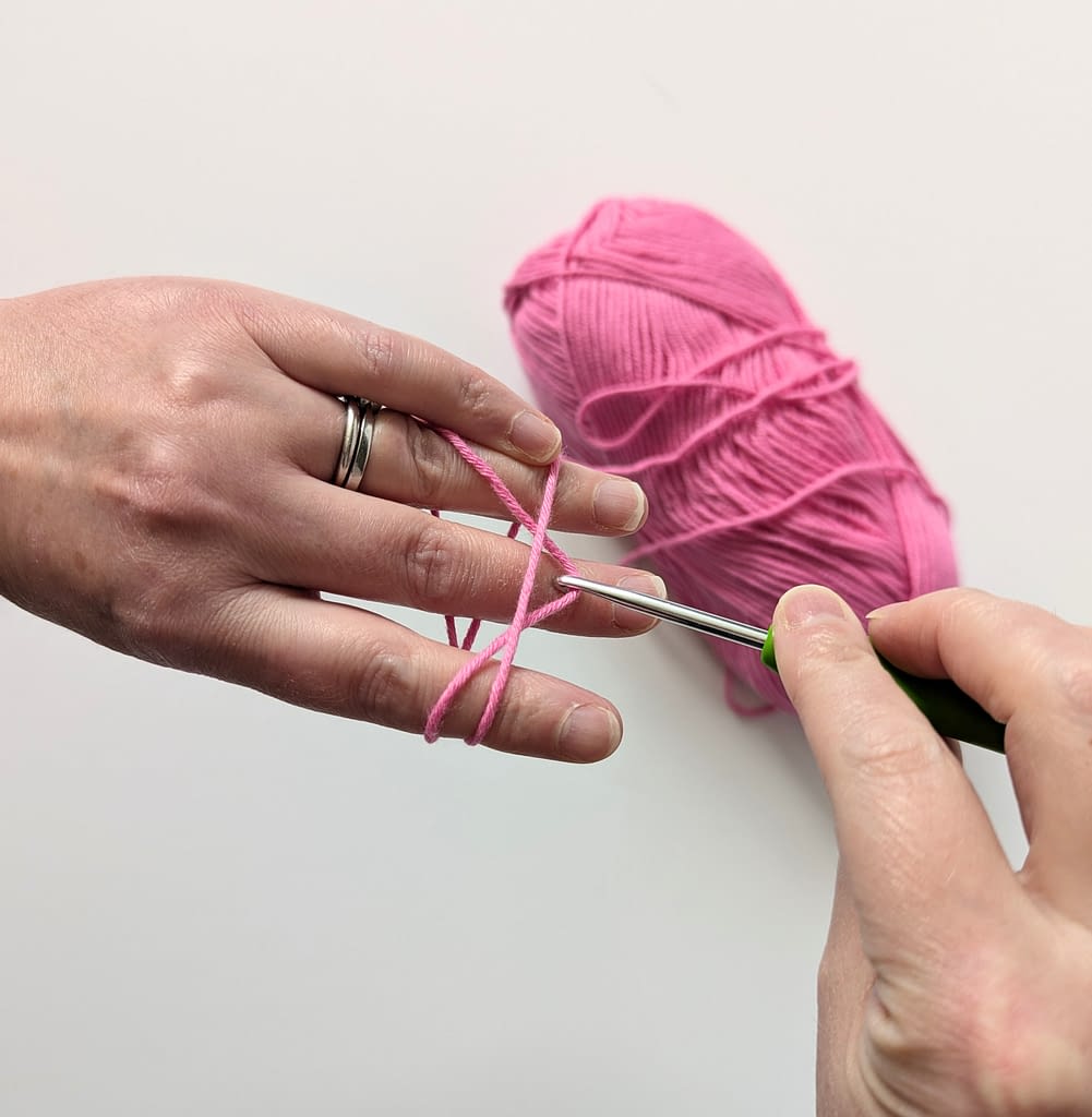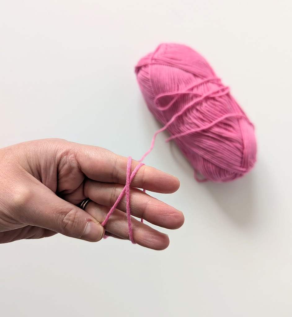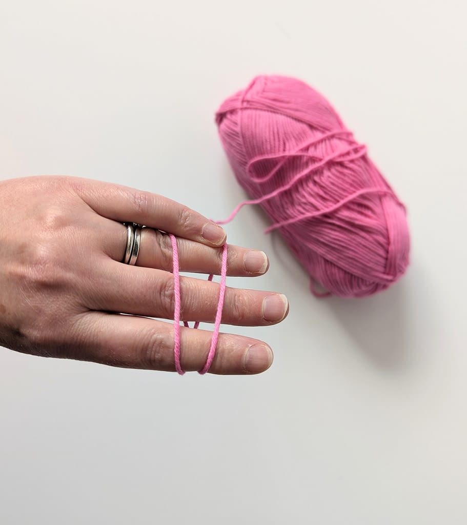 2. Wrap the yarn around fully around your fingers so that it crosses at the front….
