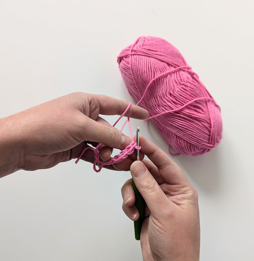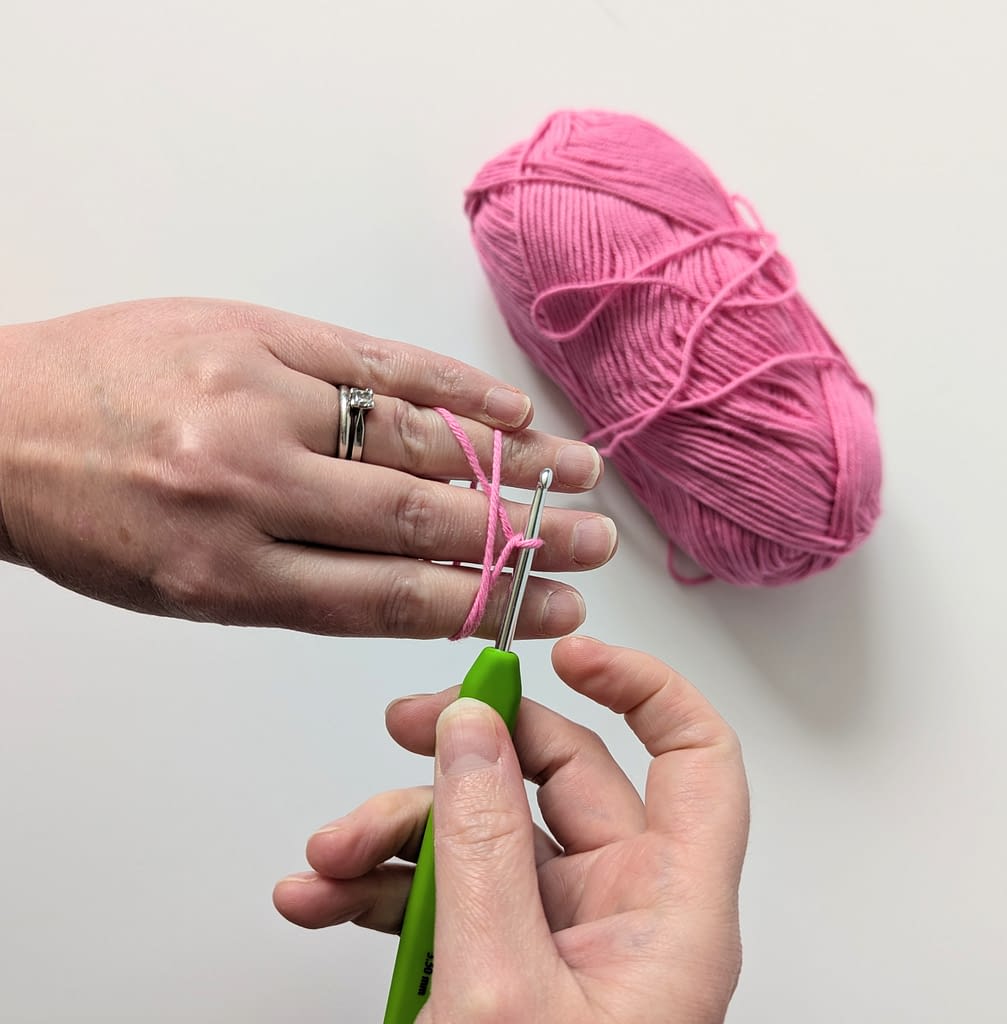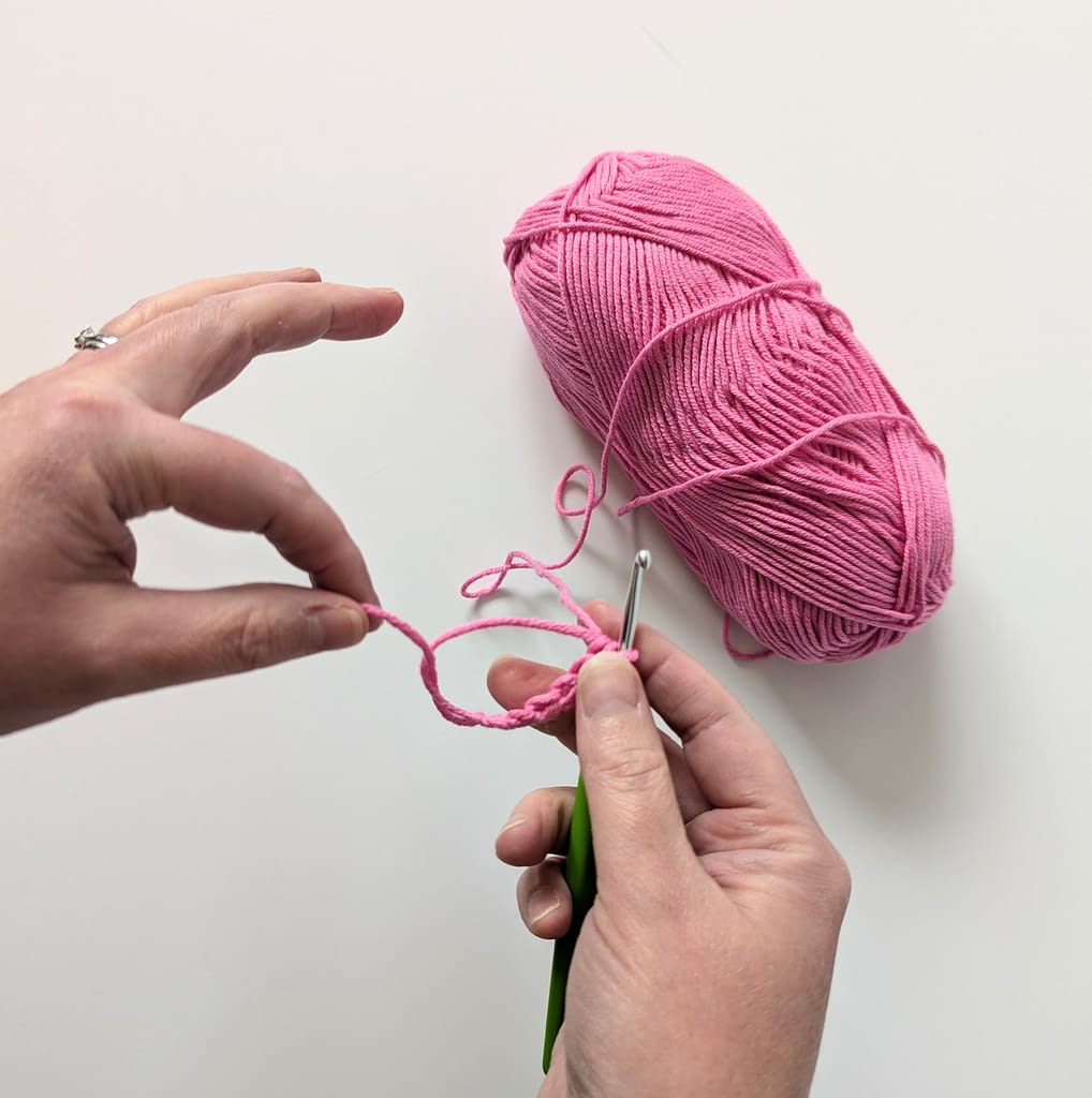 8. Now make the required number of starting chain that your pattern states (if any!) here, I am going to make some single crochet stitches (double crochet stitches in UK terms), so I will make one chain