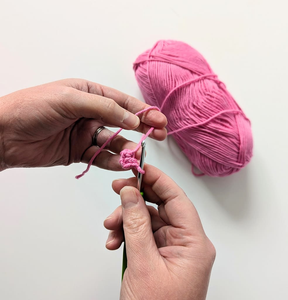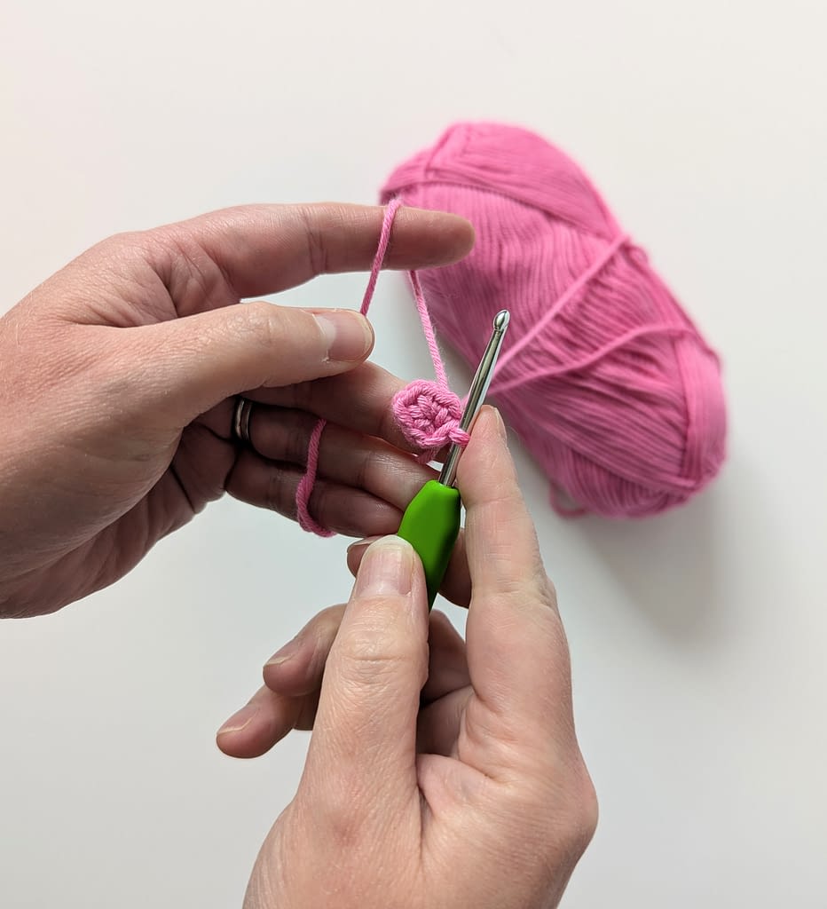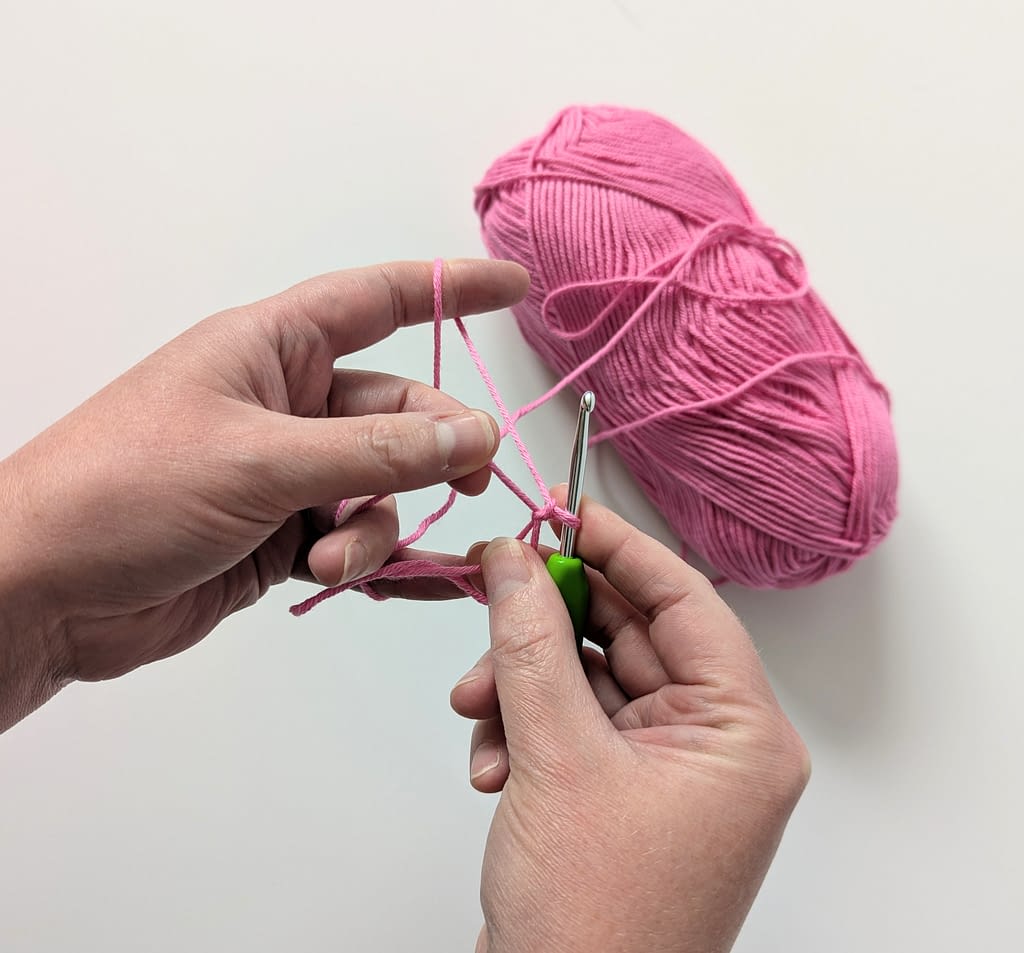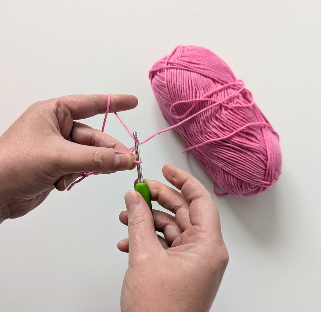 8. Now make the required number of starting chain that your pattern states (if any!) here, I am going to make some single crochet stitches (double crochet stitches in UK terms), so I will make one chain